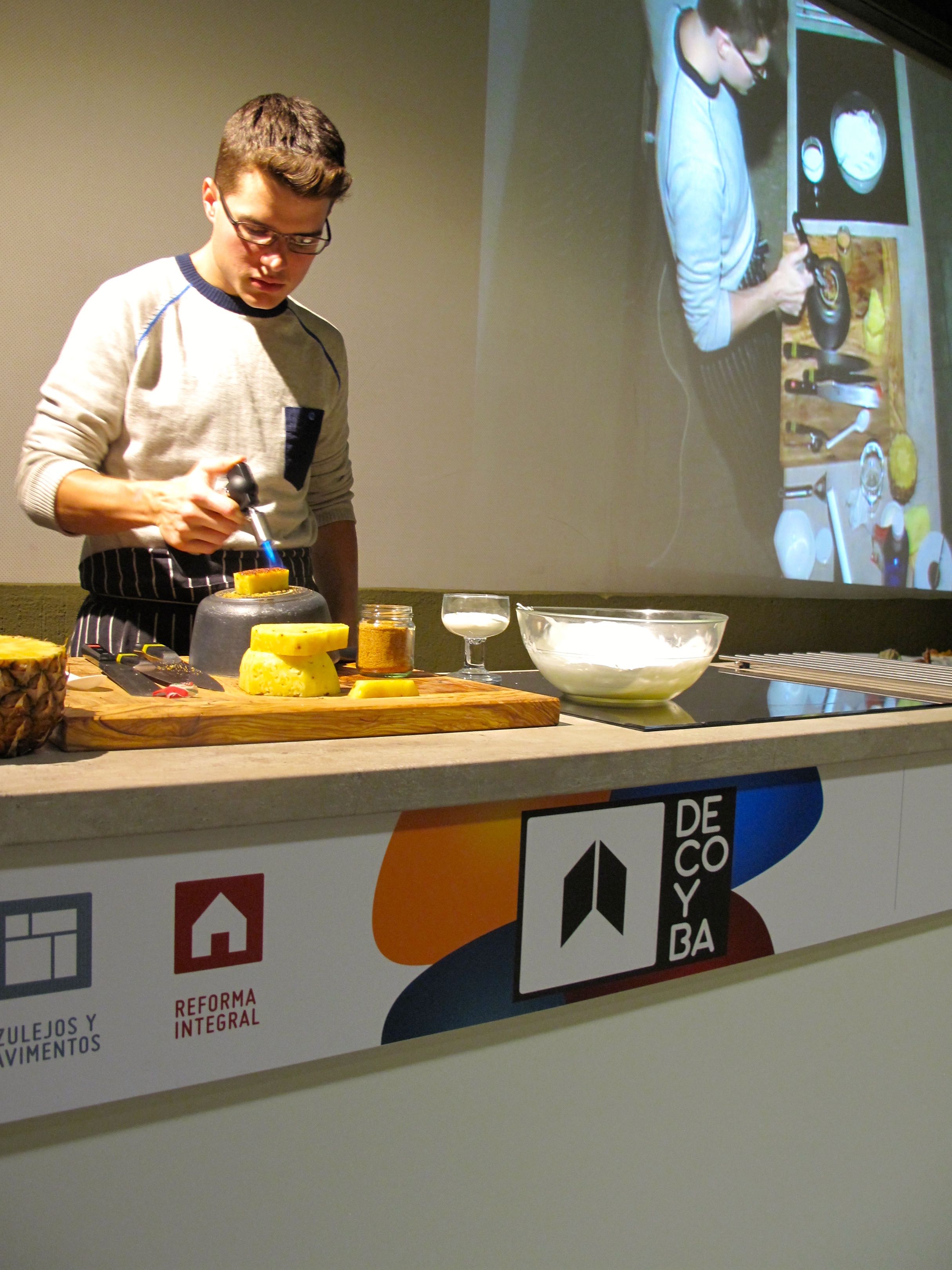 Para la ocasión, el salón de actos se reconvirtió gracias al trabajo de Decoyba, encargados de montar una isla de cocina en el escenario, y al apoyo de Whirpool, que cedió una placa vitrocerámica para que Mateo Sierra pudiese impartir su sesión navideña.